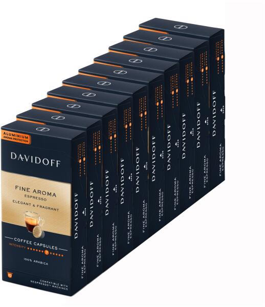 Davidoff Café Fine Aroma Espresso kávékapszula készlet, 10x10 db x 5,5 g, Nespresso rendszerrel kompatibilis Davidoff Fine Aroma;Elegáns, illatos eszpresszó gyümölcsös jegyekkel;Közepes test, finom lecsengéssel.