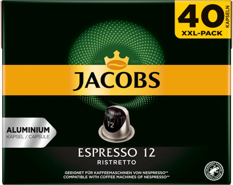 Jacobs Espresso 12 Ristretto – lendületes, intenzív, telt ízvilág! A dinamikus Jacobs Espresso 12 Ristretto kávékapszula az erőteljesebb ízeket szeretők kedvence. A látványos fekete külső mögött a telt ízvilágot képviselő Robusta és a lágyabb karakterű Arabica hibátlan elegye rejtőzik.