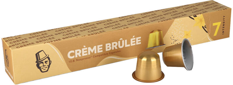 Fedezze fel az ideális kávét azok számára, akik értékelik a finomság érintését.  A Kaffekapslen krémes brűlée ízesítésű kávéja a tökéletes csemege a délutánhoz vagy a desszert mellé, amelyet megoszthat vendégeivel. Ezek az Arabica babok gondosan krémes brűlée aromával vannak ízesítve, így egy kiegyensúlyozott kávét kínálnak vanília és karamell jegyekkel. Az alumínium kapszulák könnyen használhatók: helyezzen be egyet a Nespresso® gépébe, és készítse el eszpresszóként a legjobb eredmény érdekében. Egy különleges ízélményért adjon hozzá egy kevés tejet, ami fokozza az aromatikus édességet.  Ezeket a kapszulákat nem a Nestlé® gyártja, azokat a vállalat nem hagyja jóvá és nem ajánlja, illetve nem kapcsolódnak ahhoz.