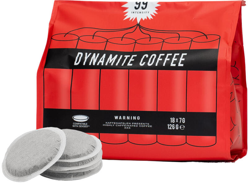 Erős kezdést biztosíthat a napjához a Dynamite kávénkkal a Senseo számára. Ez az intenzív kávé a KaffeK vásárlói körében nagy kedvenc.   Legintenzívebb kávénkat olyan kapszulákba csomagoltuk, amelyek kompatibilisek a Senseo gépével. Egy gombnyomással élvezheti ezt az ízletes csészét. Egy kapszula egy kis csésze kávét főz a Senseo géppel. Ez a kávé Európa legerősebbje. Körülbelül 4-szer több koffeint tartalmaz, mint az átlagos energiaital, ezért tökéletes, ha nehezen ébred fel reggel vagy nehezen tud ébren maradni egy kemény napon.   Szerezze be most a 18 Dynamite kávékapszuláját a Senseo számára, csak a KaffeK-en!  Figyelmeztetés: Rendkívül magas koffeintartalom. Nem ajánlott gyerekeknek, terhes vagy szoptató nőknek.