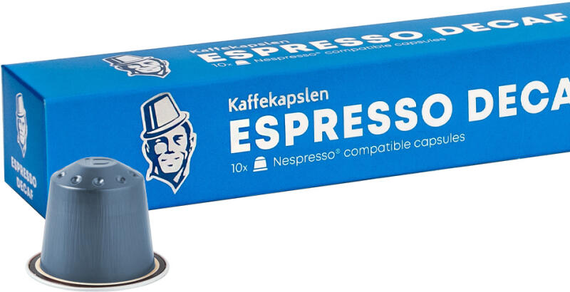 A Kaffekapslen Decaf Espresso kapszulák finom, koffeinmentes espressót tartalmaznak. Így délután vagy este is élvezhető egy csésze espresso anélkül, hogy attól kellene tartani, megzavarja az alvást. Az íze olyan, mint egy klasszikus espressoé – aromás, gyümölcsös jegyekkel, amelyeket erős test és kerek édesség egészít ki. Ez az espresso hagyományos módon, sötétre pörkölt Arabica babokból készül, amelyeket pörkölés közben Robusta babokkal egészítettek ki, hogy egy kis extra karaktert és szép cremát adjon neki. Más szóval, ez egy jól kiegyensúlyozott koffeinmentes espresso megfizethető áron – egy egyenes, sallangmentes espresso, amely megőrzi a klasszikus ízt és testességet. A Kaffekapslen Decaf Espresso alumínium kapszulái teljes mértékben kompatibilisek a Nespresso® gépekkel. Ezeket a kapszulákat nem a Nestlé® gyártja, azokat a vállalat nem hagyja jóvá és nem ajánlja, illetve nem kapcsolódnak ahhoz.