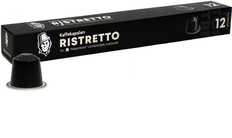 Fékezhetetlen erő és intenzitás. A Kaffekapslen Ristretto sötéten pörkölt Arabica és Robusta kávészemekből készül. A kávé íze mély és intenzív, amely a kávészemek lassú karamellizálódásából ered. Az ízvilág kerek és éles, helyet adva a finom ízjegyeknek és a gyümölcsös édességnek. A kávé telt ízét friss savasság és határozott keserűség egyensúlyozza. A kapszulák alumíniumból készülnek, hogy megőrizzék a kávé frissességét és aromáját. A Kaffekapslen Ristretto intenzív és testes Lungo-ként is lefőzhető, ha valaki egy nagyobb csésze kávéra vágyik. Ezeket a kapszulákat nem a Nestlé® gyártja, azokat a vállalat nem hagyja jóvá és nem ajánlja, illetve nem kapcsolódnak ahhoz.