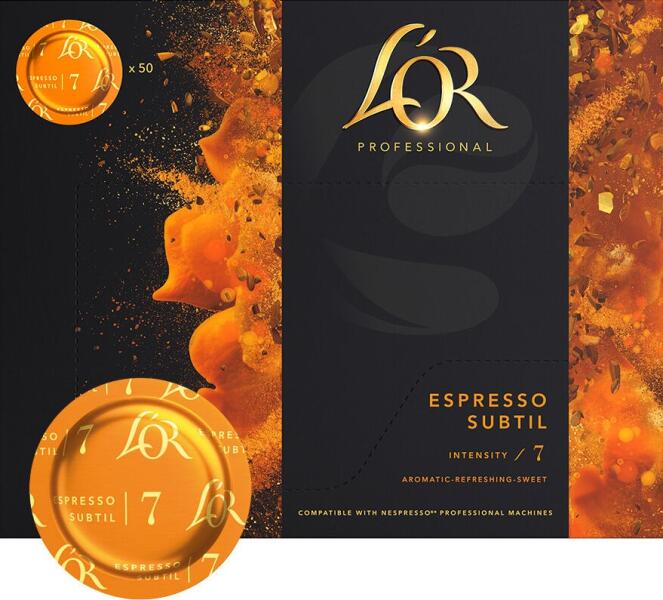 L'OR Espresso Subtil kávékapszula Nespresso Professionalhoz 50 db Aromás és frissítő kávé. Rainforest Alliance minősítés. Minden csésze kávé aromájának és frissességének megőrzése a hermetikusan lezárt alumínium kapszuláknak köszönhetően. Professzionális Nespresso kávéfőzőkkel kompatibilis kapszulák. Ideális eszpresszó kávéhoz. Az EU-ban készült.