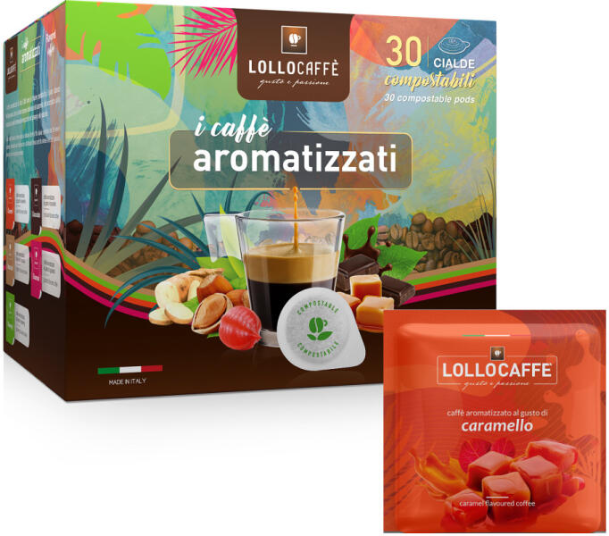 Kiváló minőségű Lollo Caffé karamellás ízesítésű ESE Pod kávépárna. Testes, sűrű és krémes nápolyi kávé kellemes karamella aromával. Egy különleges ízélmény, kávéházi minőség otthon kedvező áron.