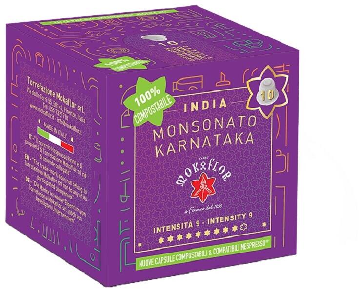 Mokaflor kávékapszula, India, 10 db, Nespresso kompatibilis, intenzív ízű, keserű, 100% Robusta, krémes, nagy intenzitású (11250)