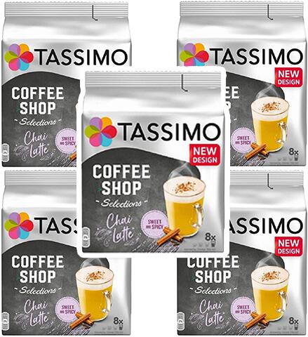 Indiai nemzeti ital egyszerűen, egyetlen kapszulából, a saját konyhájából. Ez a Chai Latte Tassimo kapszulás tea, megújult csomagolásban. 5 CSOMAG CHAI LATTE EGY KARTONBAN